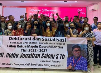 Bekasi – Pdt. Ferdinand Rompas, gembala Gereja Pantekosta di Indonesia (GPdI), Sukabumi, Kamis (12 Mei 2022) menyatakan secara resmi di depan mencapai 450 hamba Tuhan GPdI Jawa Barat, tentang kesiapan pencalonannya sebagai...